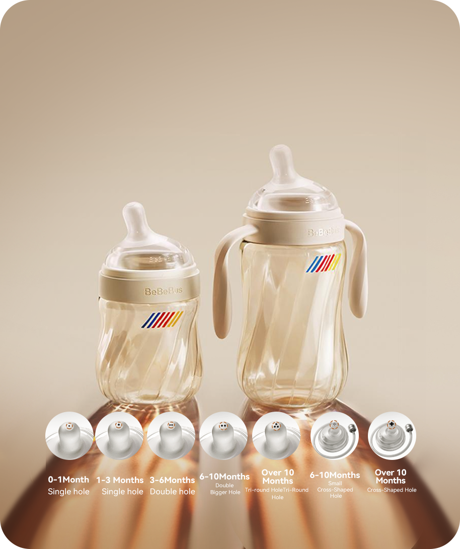 Crystal+嬰兒奶瓶套裝經過精心設計,完美契合寶寶的自然發展階段-從新生兒時期到活潑好動的幼兒時期。輕鬆無壓力,每個階段都有適當的乳量:0-1個月、1-3個月、3-6個月、6-10個月、10個月以上。伴隨寶寶成長,無需頻繁更換奶瓶。